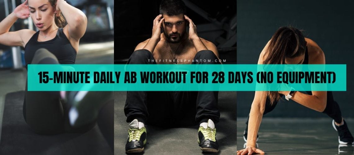I’ve designed an ultimate bodyweight 15-minute ab workout routine. It involves performing more than 50 different core exercises throughout the 28 days. These exercises bolster the rectus abdominis and obliques without equipment and improve six-pack appearance.