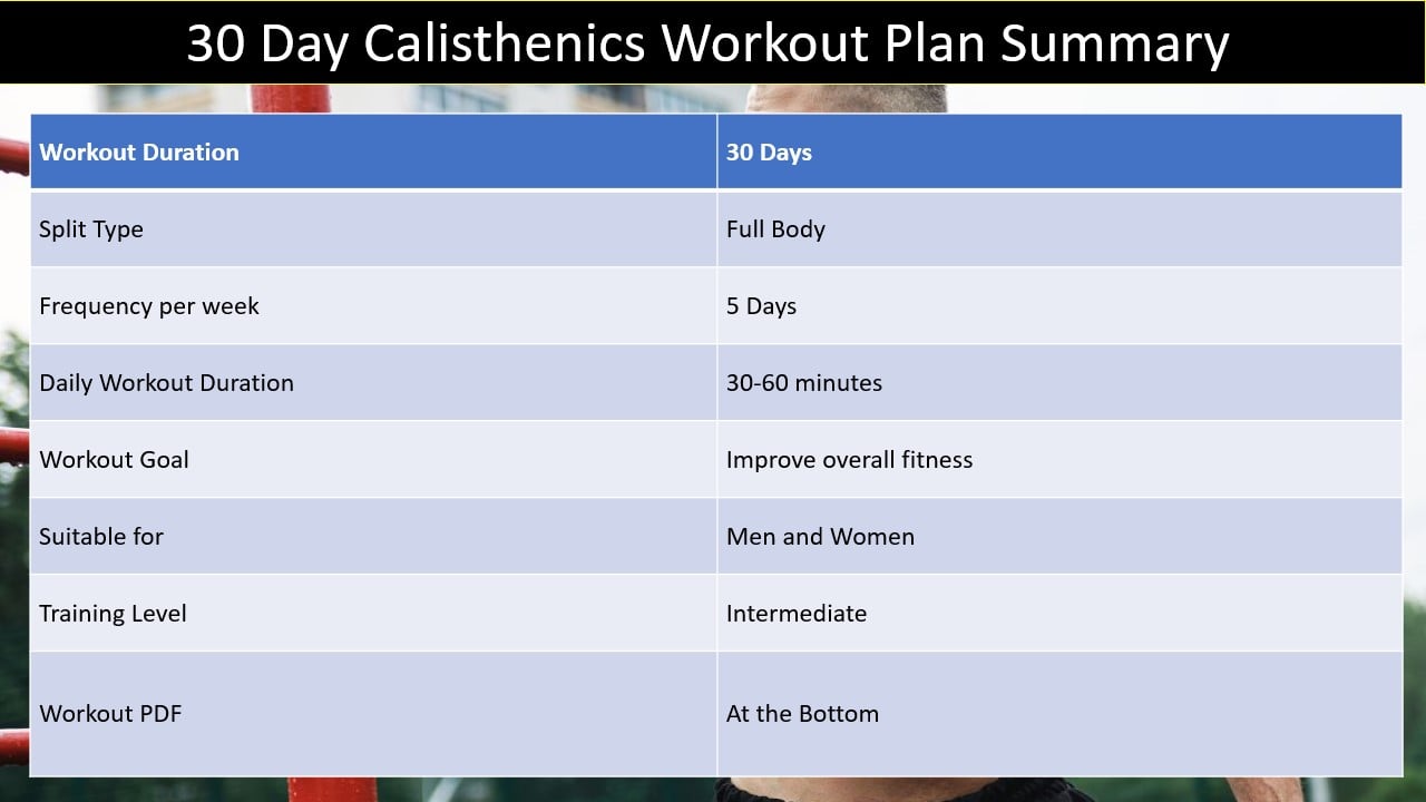 Full 30 Day Calisthenics Workout Plan to Challenge Your Fitness