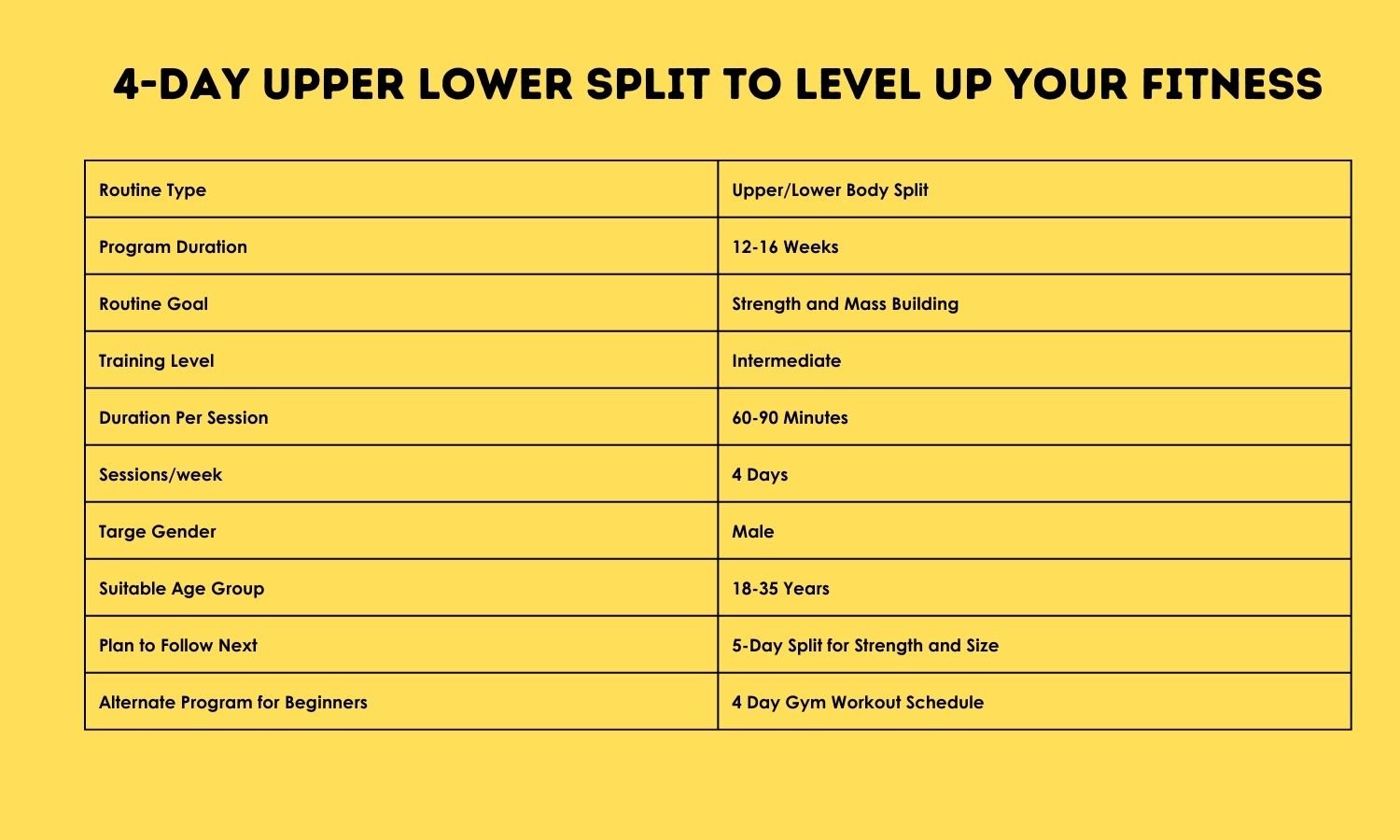 Okay! Let’s uncover the upper/lower 4 day workout split: