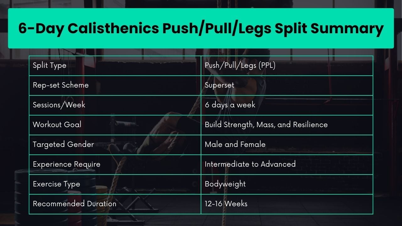 6 Day Push Pull Legs Calisthenics Workout Routine to Advance Your Fitness Level