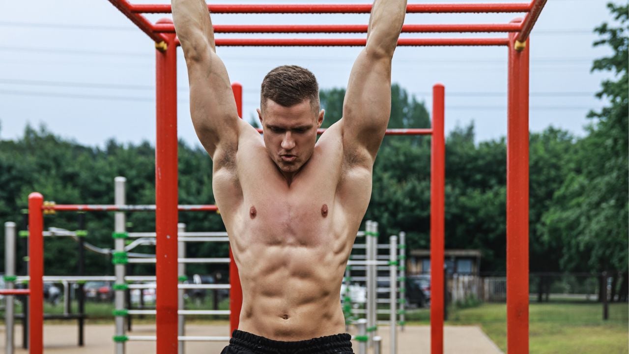 How to: Hang onto the bar with your palms above it and hands slightly wider than shoulder-width apart. Lift your legs up until they are parallel to the floor. Keep your arms straight and brace your abdominal muscles. Now pull yourself up until your face reaches the bar height. Staying in an L shape, lower into the start and repeat for suggested reps and sets.