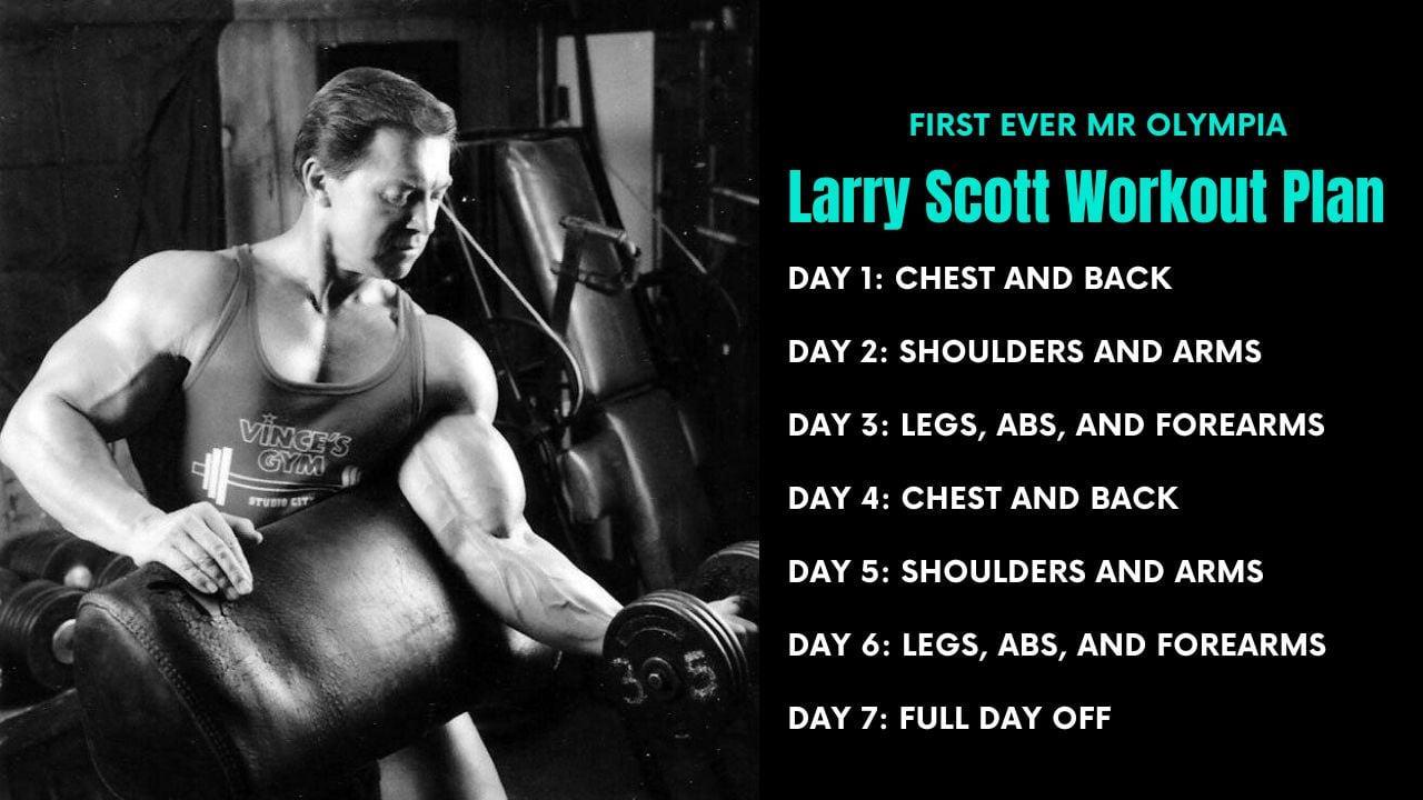I’ve covered one of Larry Scott’s training plans in this article. This program involves training six times per week with one day of full rest.